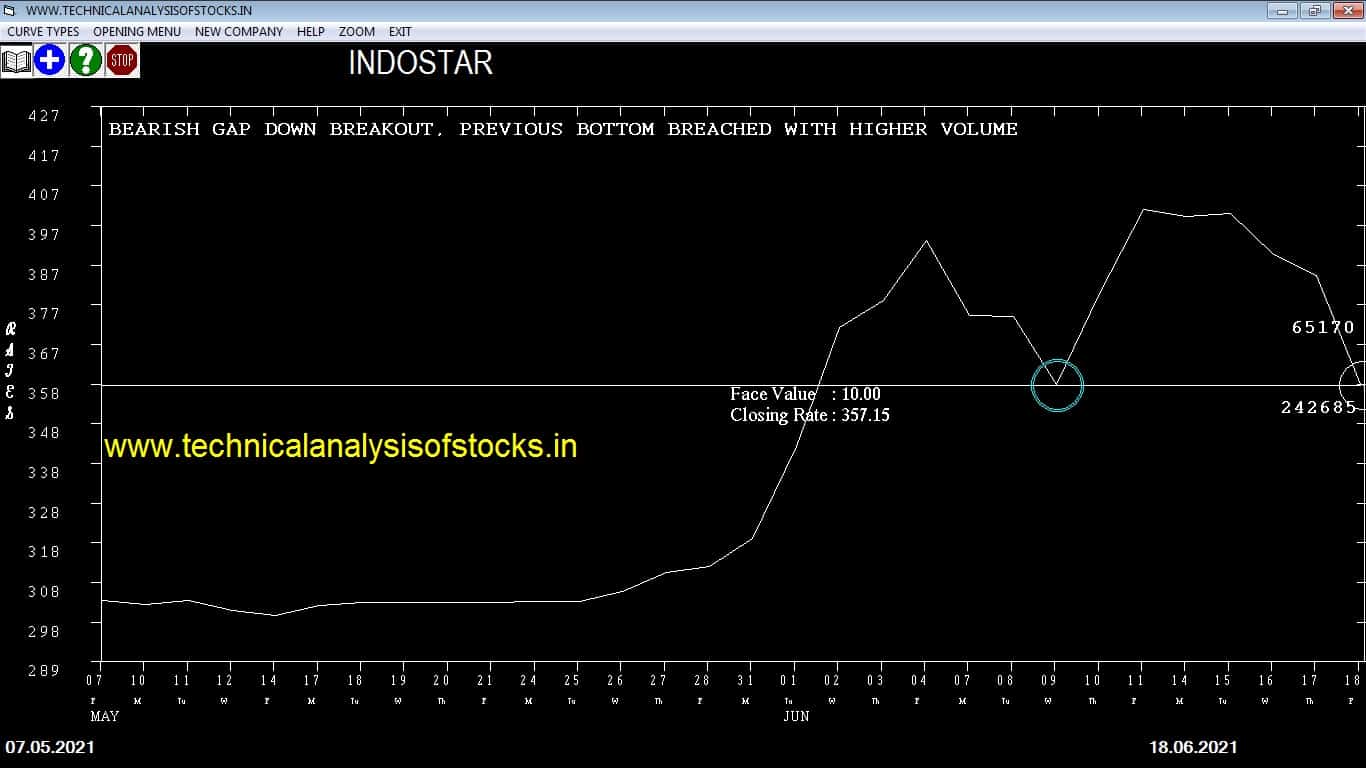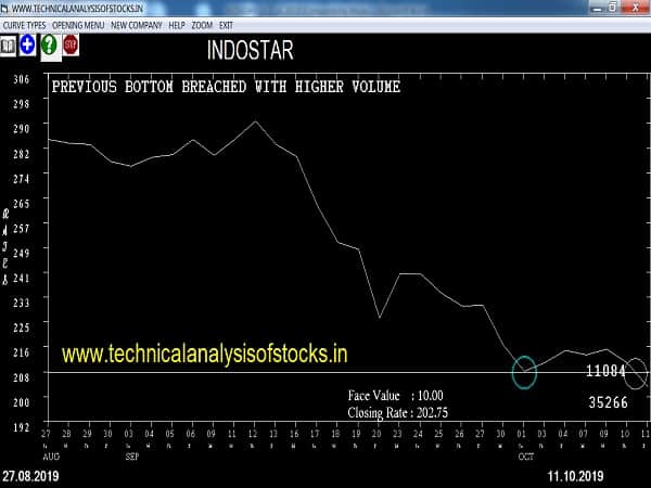 Share to Buy 2 : INDOSTAR (NSE Code) Signal : Bullish pennant break out, double tops crossed with higher volume. Buy Above : 260 Stop Loss : 240.40 Target : 276.25 (Short term)